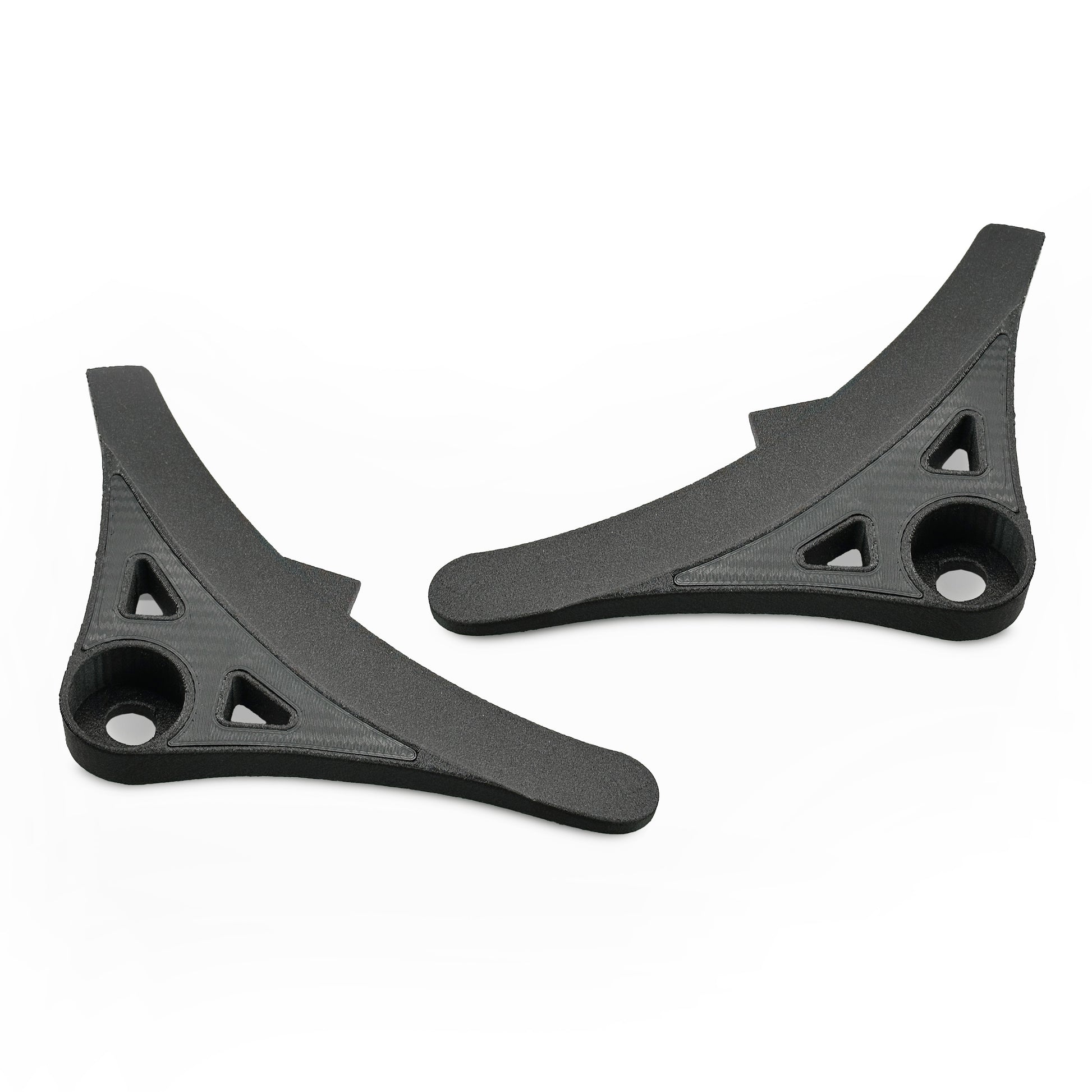 3D printed replacement front mounts, designed to replace broken or damaged originals. These mounts are made from PA6-CF (Carbon Fiber reinforced Nylon). This material is an engineering-grade material used in motorsport and aerospace for its high strength, stiffness, and heat resistance.